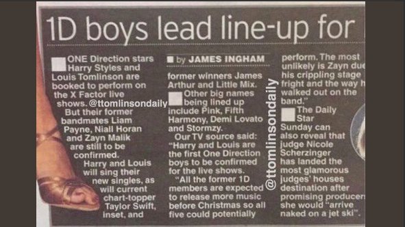 Daily Star, ha confirmado la participación de Harry Styles en los shows en vivo del programa caza talentos The X Factor UK 2017, concurso en el que se presentó como solista en 2010 y salió siendo parte de una banda llamada One Direction, cuyos componentes Louis Tomlinson, y aún por confirmar Niall Horan y Liam Payne, actuarán también, presentándonos sus nuevos sencillos.