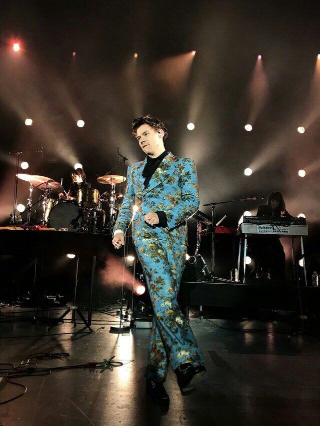 Harry nos sorprendió ya desde el primer concierto poniendo una tela con un estampado floral característico de su álbum cubriendo el escenario y dejando ver su sombra a través de un reflector, para minutos más tarde dejarse ver ante sus fans y dar comienzo a su magnífico show. ¡y la verdad es que este chico nunca deja de sorprendernos!