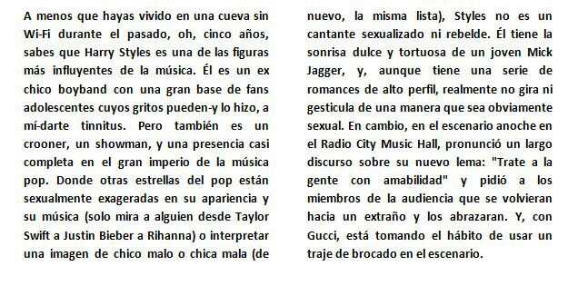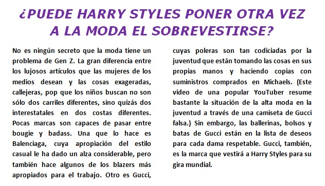 Artículo de la revista Vogue sobre la vestimenta que usa Harry Styles
