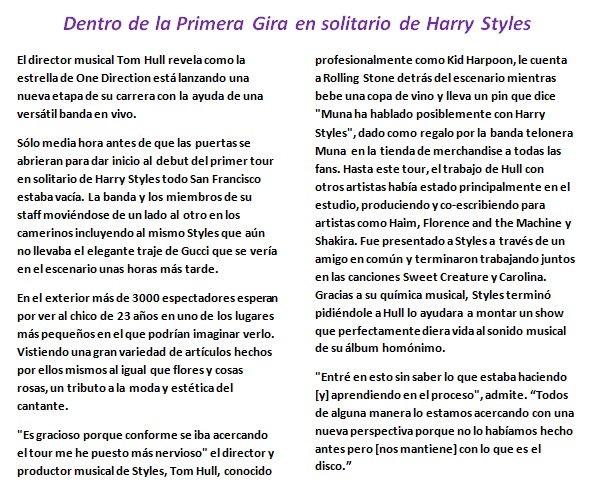 Sabemos que Harry comenzó su primera gira en solitario el 19 de septiembre en San Francisco, después se dirigió a Los Angeles, donde dio su segundo concierto en el Greek Theatre el 20 de septiembre.