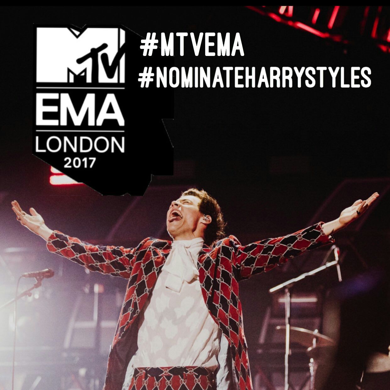 Harry Styles ha sido nominado a la 24ª Edición de los MTV EMA, que tendrán lugar en el épico SSE Arena de Wembley, Londres el próximo 12 de Noviembre para disfrutar de una noche de premios y actuaciones de primera línea en uno de los eventos de música más impresionantes del planeta. Los EMA's son tanto para los fans como para sus artistas favoritos. Son los fans los que deciden los ganadores de la noche votando sus artistas favoritos las semanas previas al show. Desde Brasil hasta Seúl, fans de todo el mundo pueden, no solo seguir, sino formar parte de las distintas iniciativas de los EMA's a través de las Redes Sociales, los livestreams, visitando la web de los EMA, descargándose su app y por supuesto, a través de MTV TV.