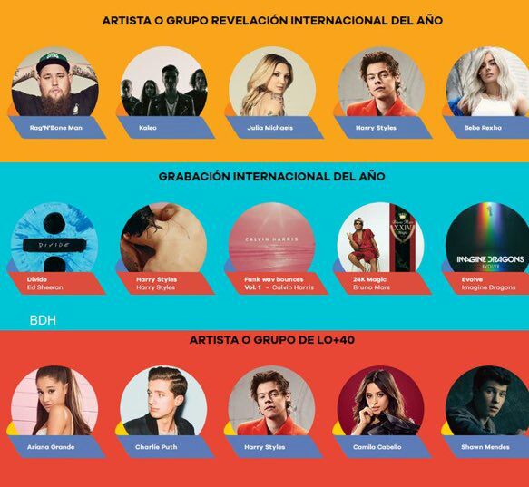 Harry está nominado a tres categorías de los artistas internacionales para los 40 Music Awards, las cuales son: