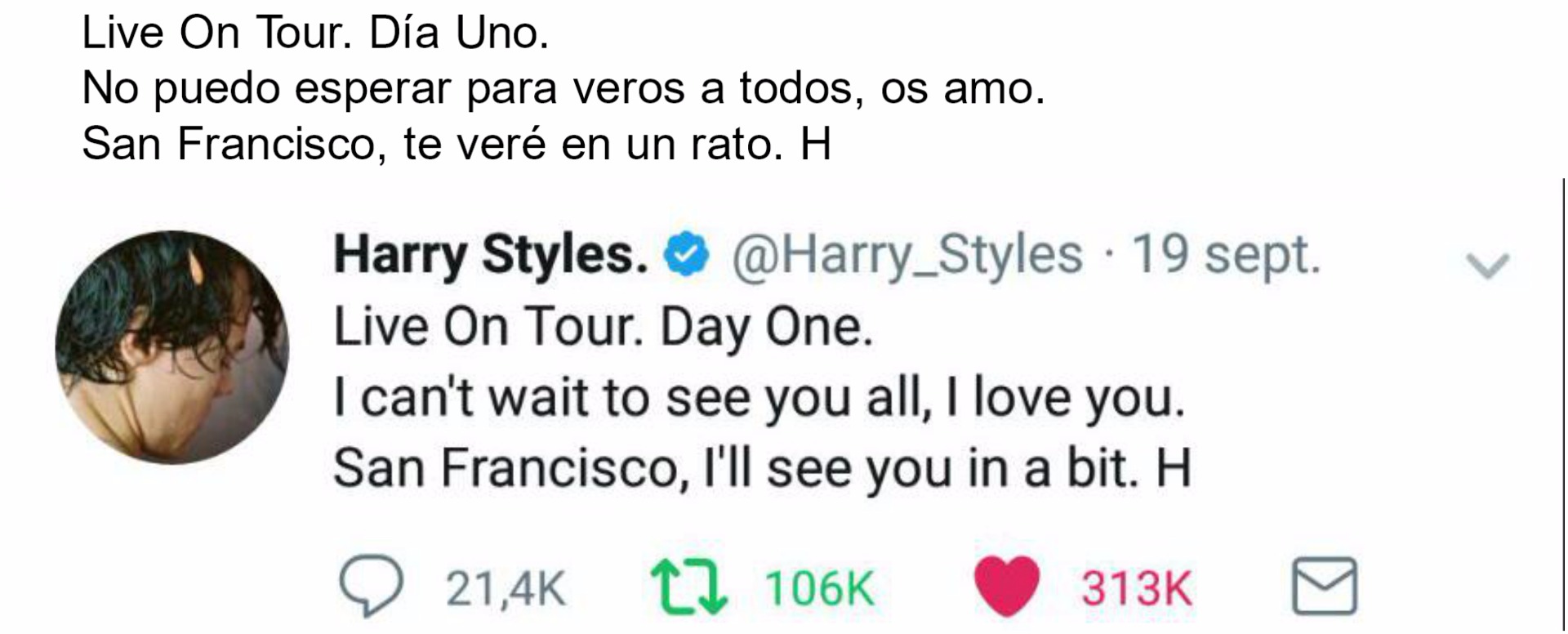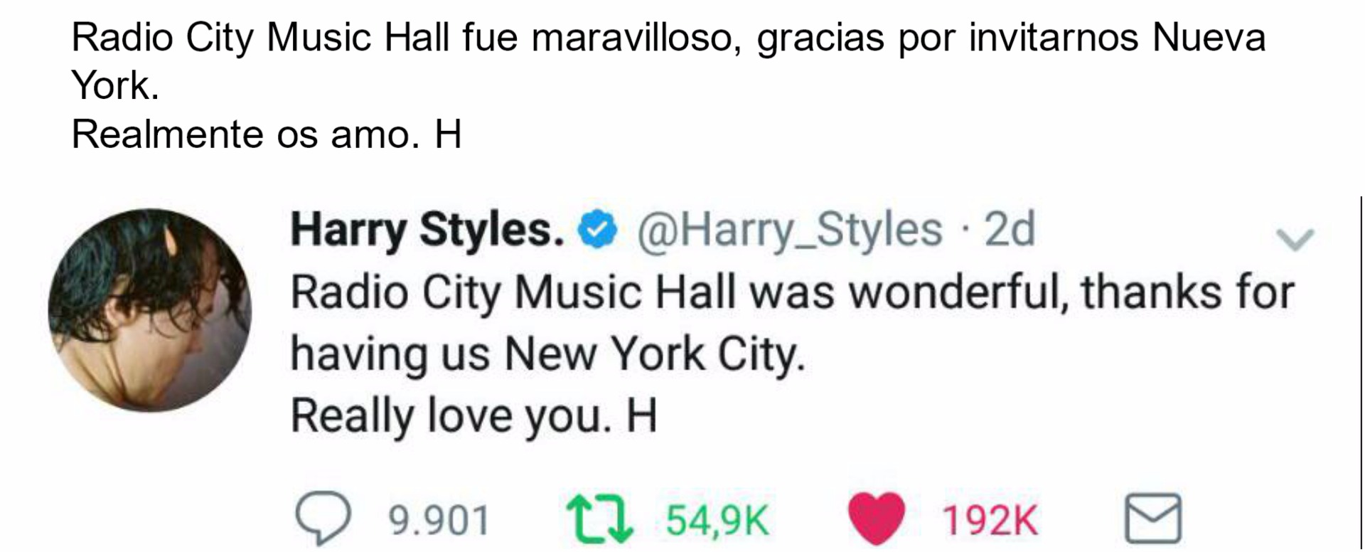"Hola, mi nombre es Harry y soy de Inglaterra" es la frase que utiliza para presentarse, él siempre es muy atento con sus fans y siempre está agradeciendo y mandando amor.